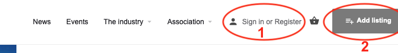 Click the «Add listing» button top right anywhere on our website (see screenshot above).